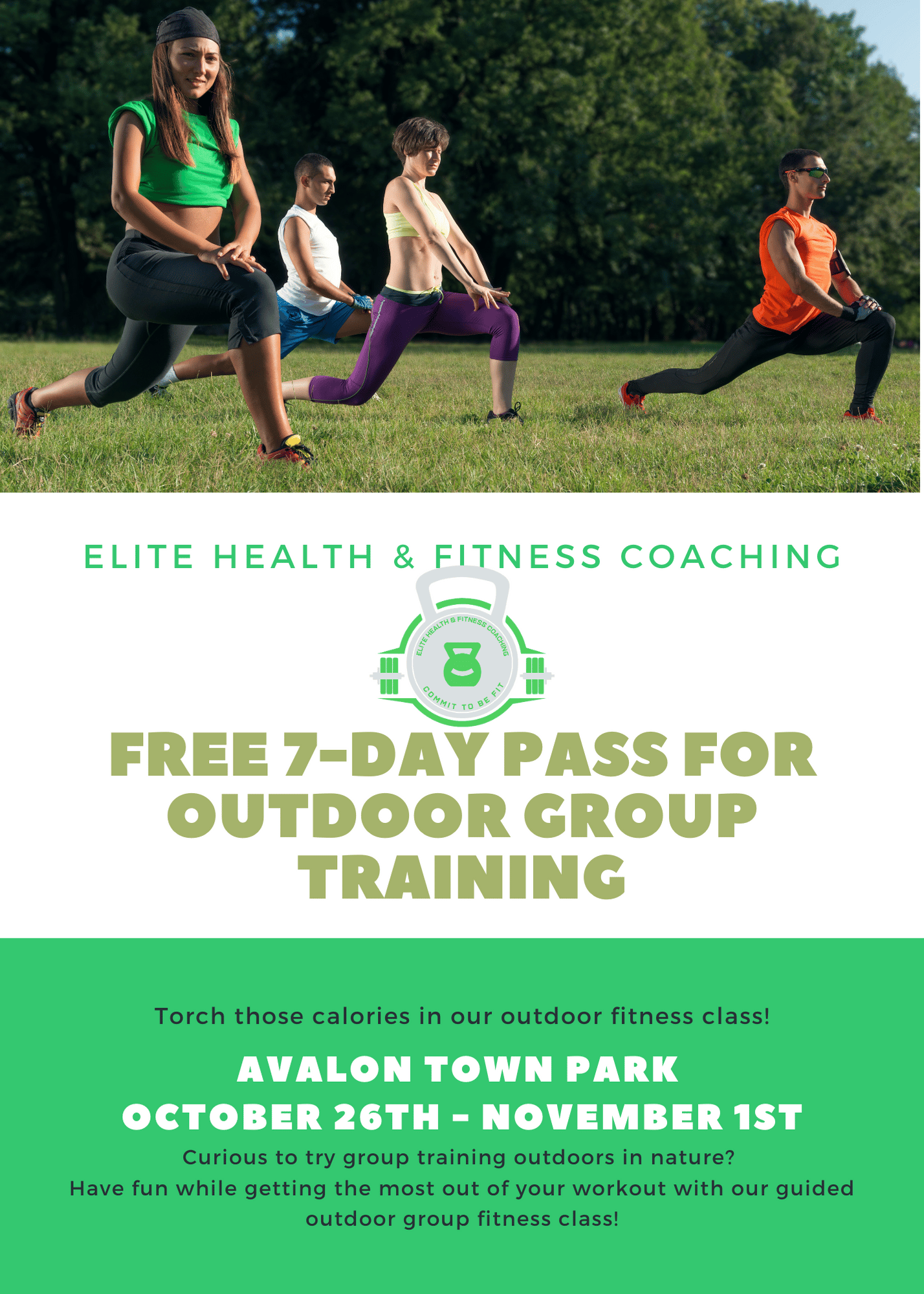 Live in the Avalon Park, Orlando area? Take advantage of this one-time offer by taking as many training classes as you want during this FREE week. Come join our outdoor group training classes to learn all about functional/fundamental body movements and gain confidence in your ability to workout safely, efficiently and effectively in reaching your fitness goals while doing so in nature.
